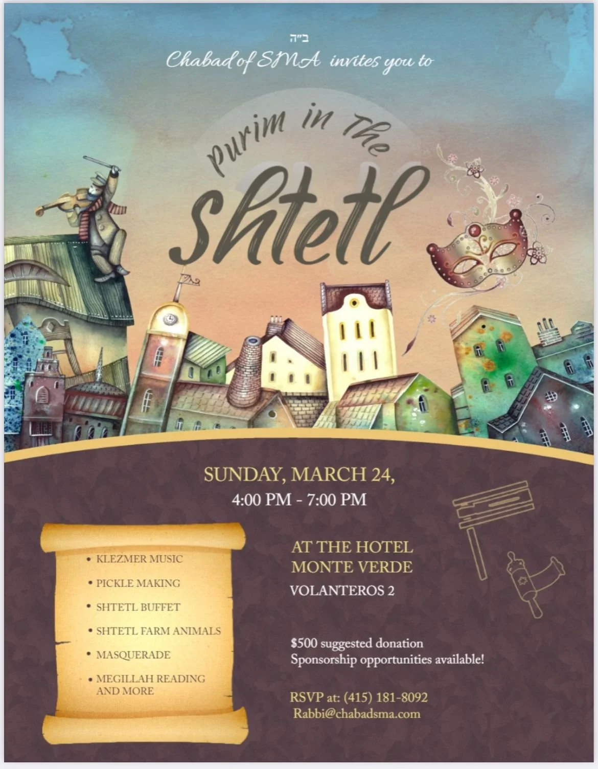 Come hear the Megillah Saturday evening, March 23th at 7:45 pm , San Antonio Abad 14