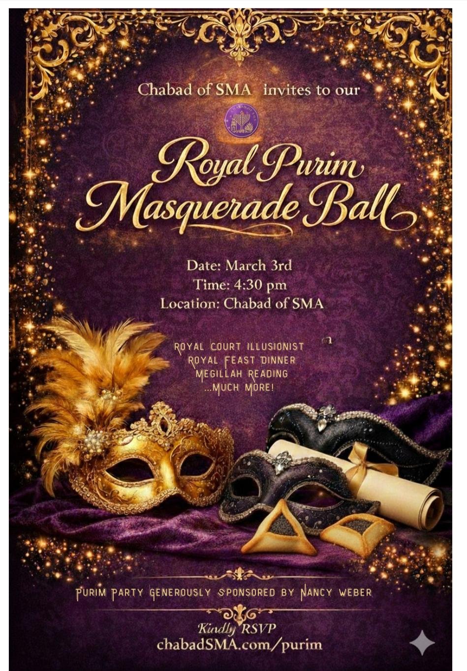 Come join our grand Purim Party, complete with a Megillah reading, music, dinner and fun activities.